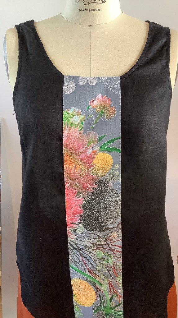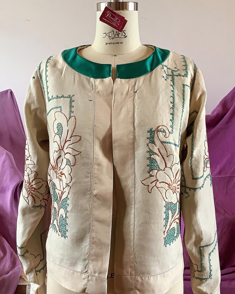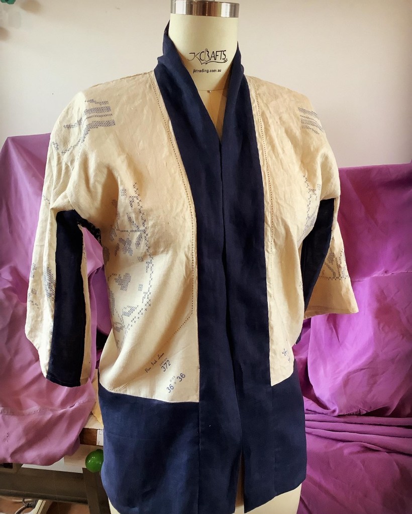 Each garment is a concoction of re-purposed clothing and fabrics. On occasion I will use new material, however the majority of the item is re-used fabric. Some of the garments come from op-shops, some even brand new or hardly worn, but sent to an op-shop for another life, by someone at sometime.