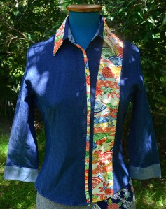 denim shirt 1 web A lovely kimono silk off-cut features on this shirt, with hand-stitching detail. Size 10 Like Loading...